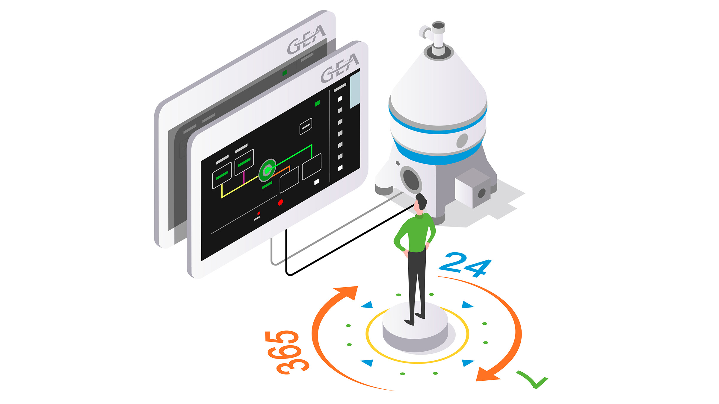 Industrial applications are facing a continuously increasing degree of automation. As a result, the availability of controls becomes significantly important. GEA covers this with special hardware in hot standby mode. 24 hours a day, 7 days a week, 365 days a year.
