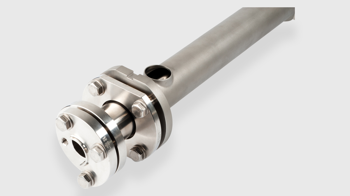The intermediate flange on the dynamically sealed side has a radially positioned leakage “tell pipe” to ensure that any leakages on the product or shell side can easily be detected. The inner bundle can be removed for inspection purposes.