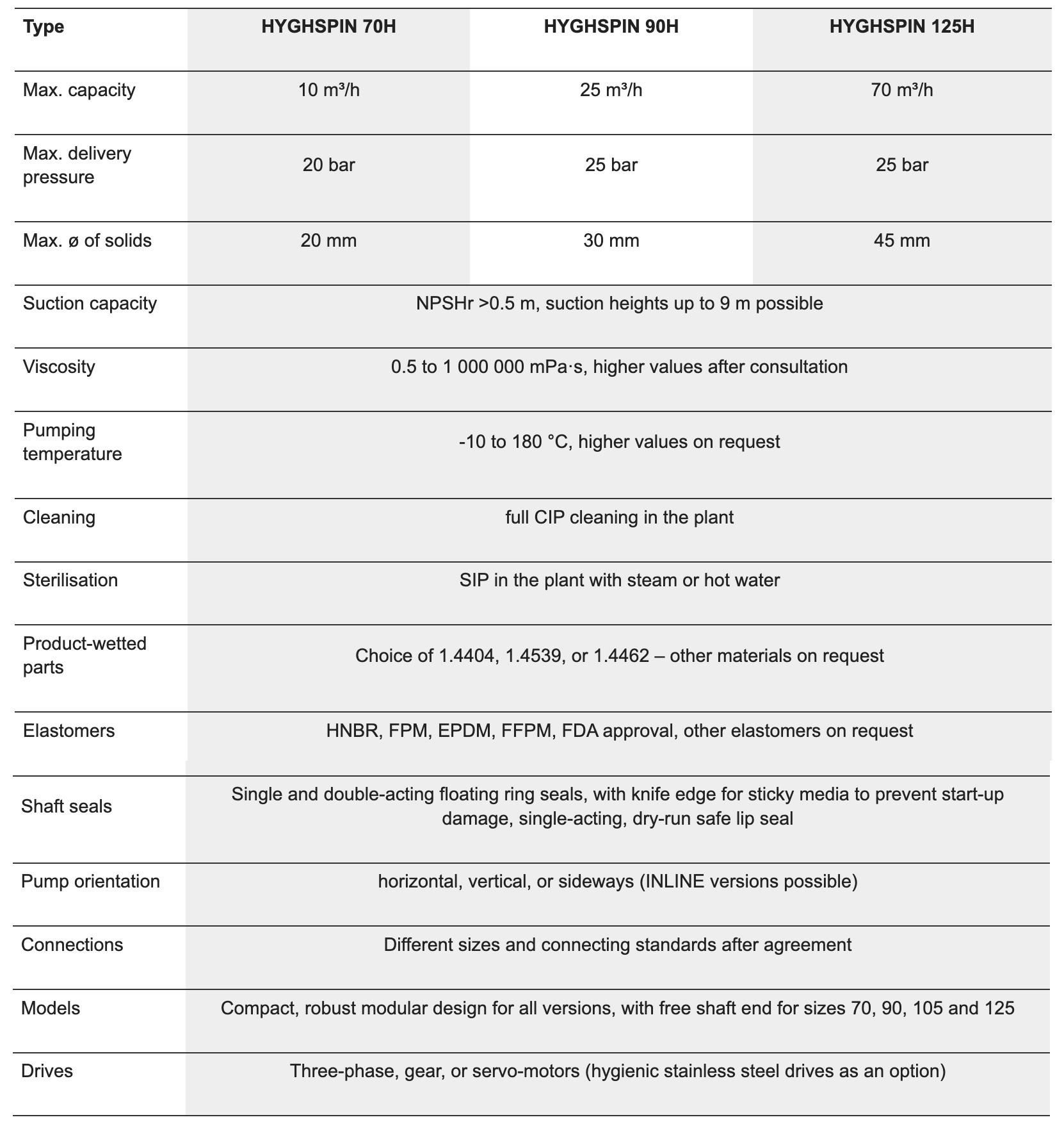 The HYGHSPIN stainless steel pump series from Jung Process Systems have been proved worldwide and can be used for flowable products with practically all viscosities and consistencies – whether aqueous, highly viscous, lumpy, fibrous, or gas-laden.