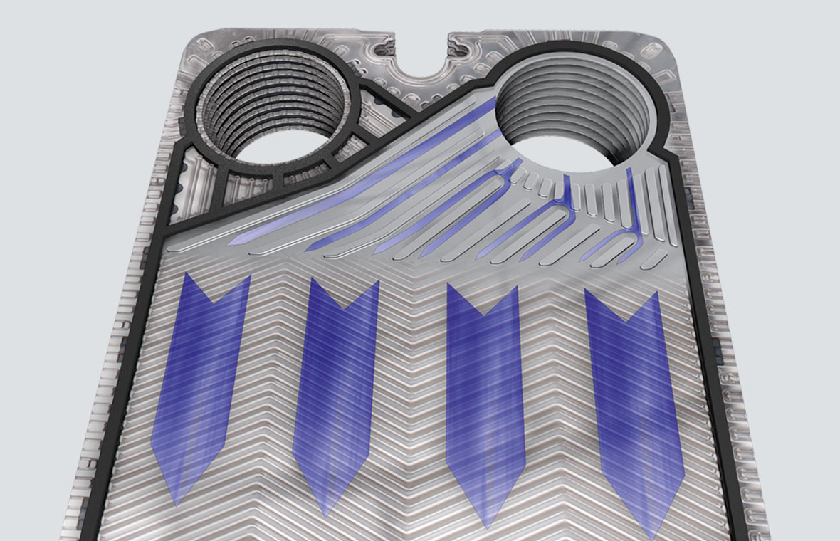 Kelvion’s unique plate corrugation pattern allows even flow distribution across the entire plate surface thereby maximizing heat transfer while minimizing fouling rates, plate count, and cost.