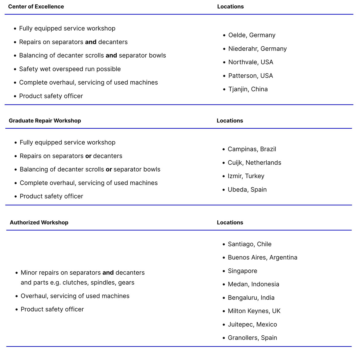 INTERNATIONAL REPAIR NETWORK FOR GEA CENTRIFUGES