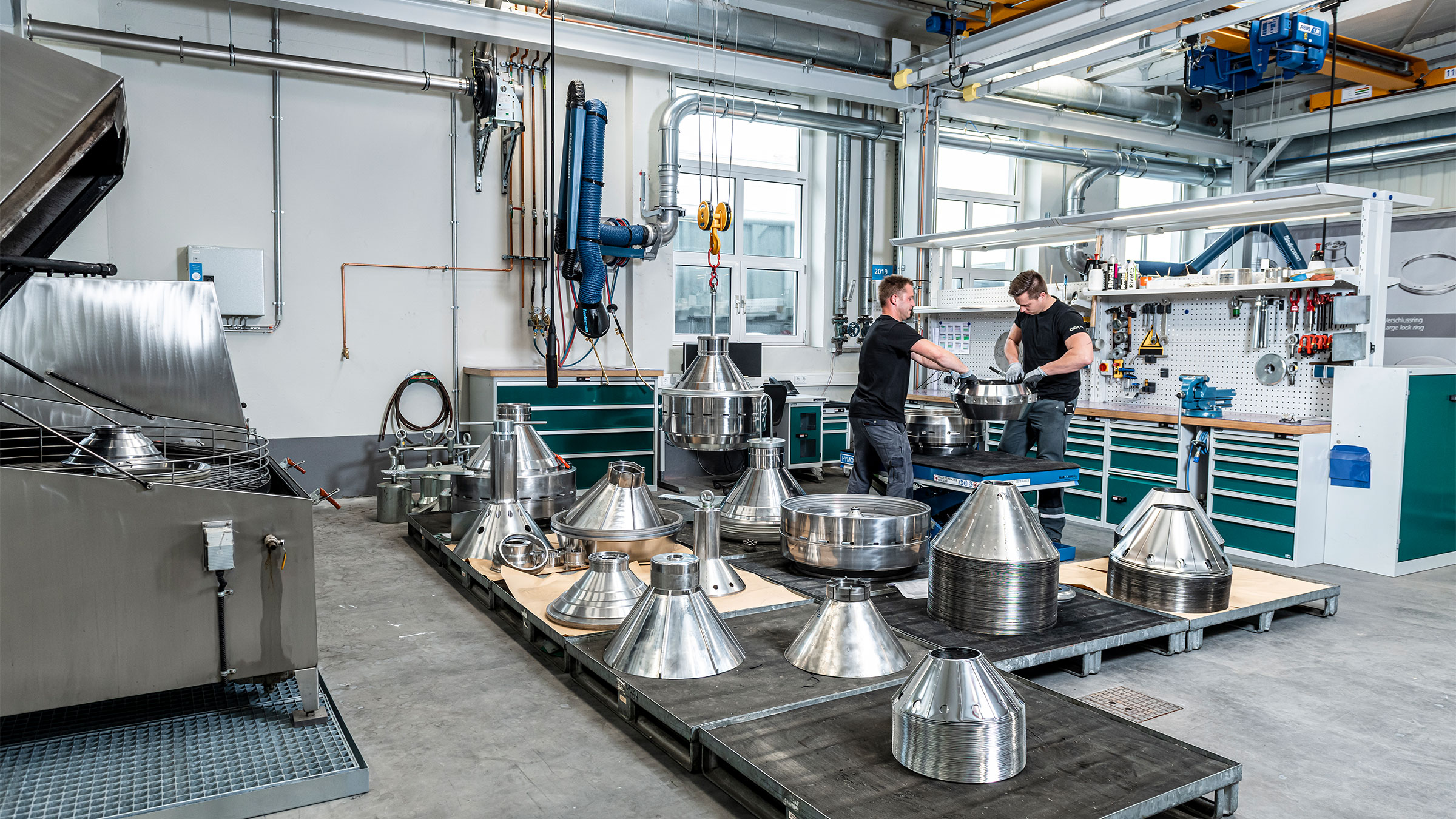 In our workshops with a total area of ​​over 30,000 m², over 5,000 repairs are carried out annually. To avoid bottlenecks in your production, you can access over 450 rental bowls and scrolls as well as over 300 exchange bowls and scrolls. All our workshops are certified in accordance with DIN EN ISO 9001 and a specially trained product safety officer monitors compliance with our high-quality standards at each location.